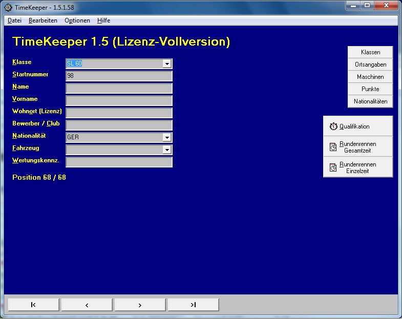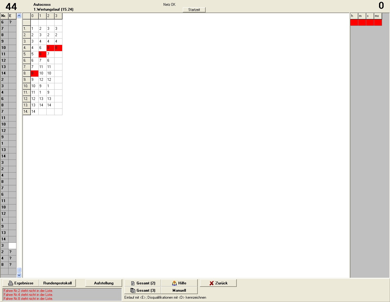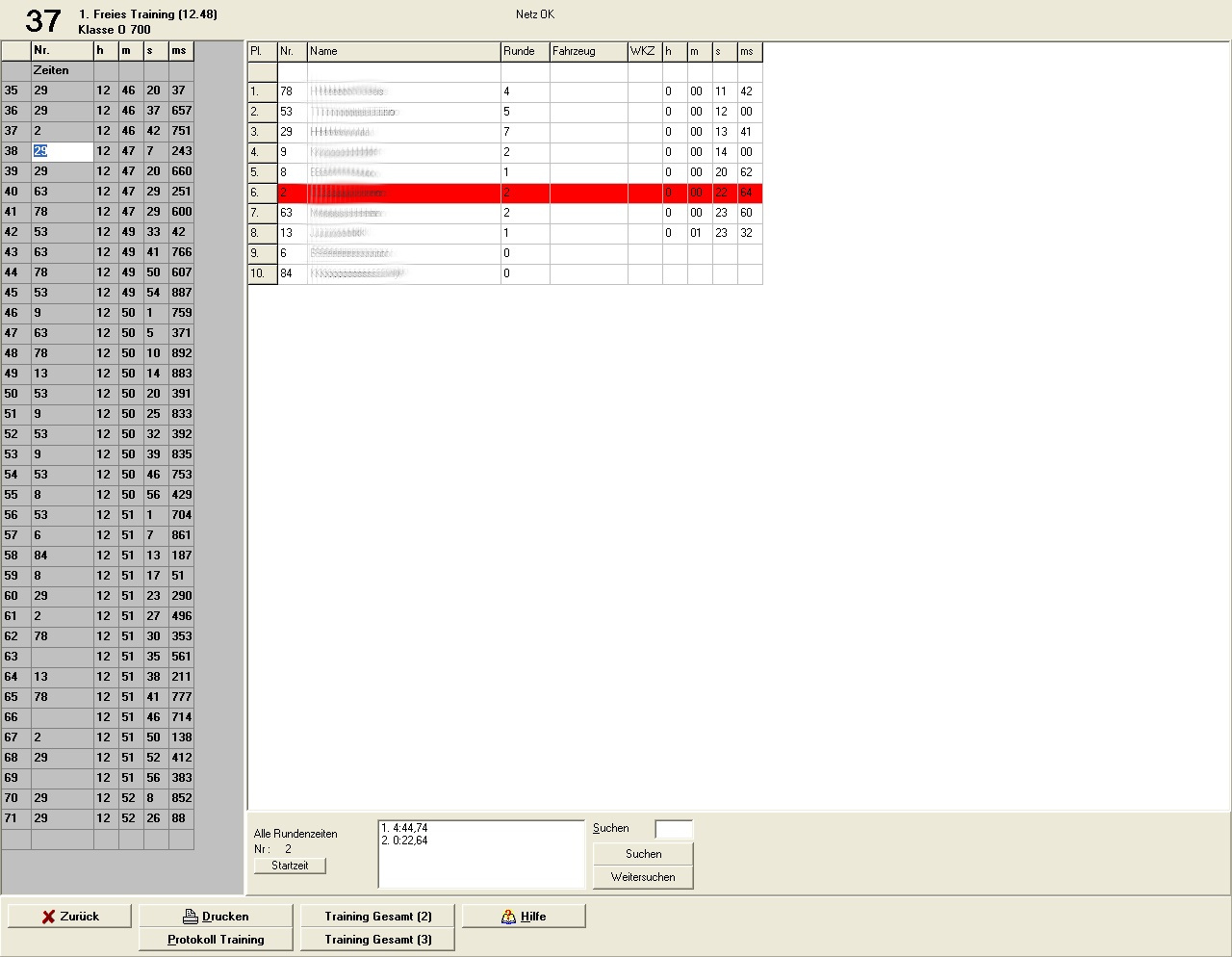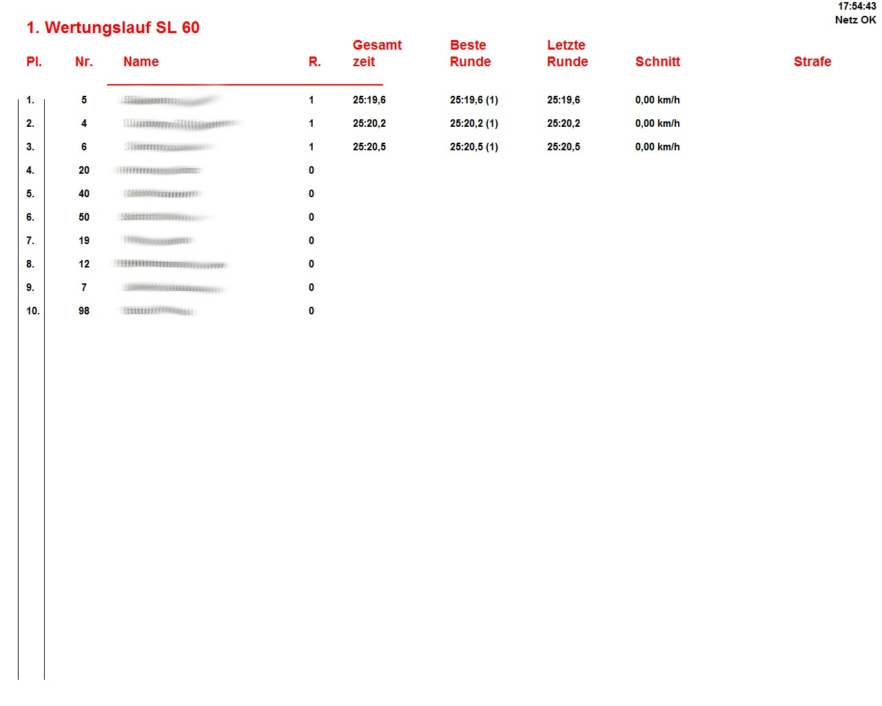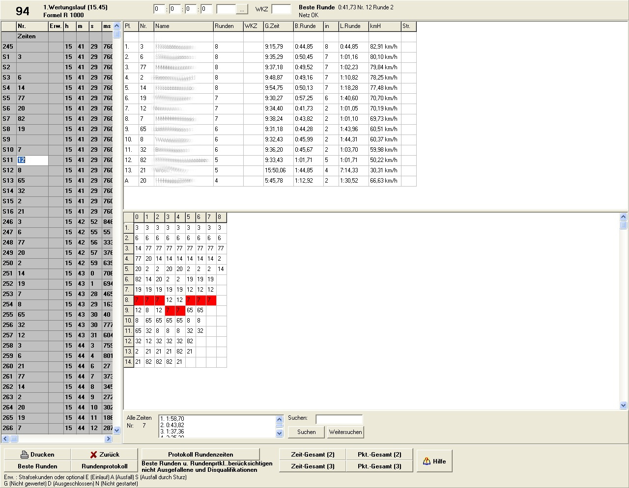 - Rennen - Rundenprotokoll und für jeden Fahrer und eine Zeit je Fahrer für das Gesamtrennen