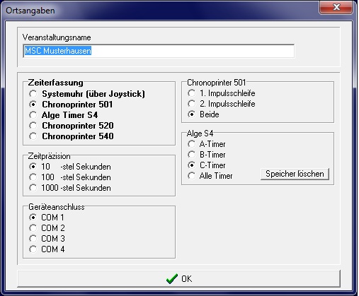 - Anbindung von Zeiterfassungshardware: Alge Timer S4, Chronoprinter (501, 520 oder 540)